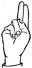 На ћирилици написано ЕВГЕНИЈЕ РАДИЧЕВИЋ састоји се из 17 слова [?]. Исписано ћириличном једноручном азбуком за глувонеме: